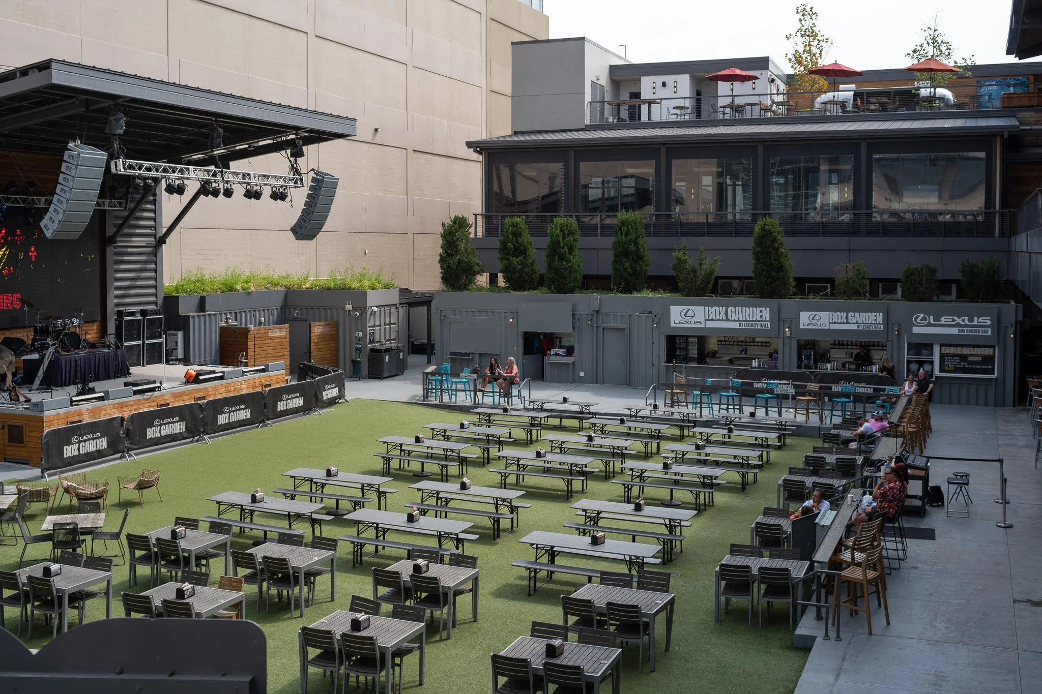 In designing the venue, we worked closely with our partners at Gensler to bring their vision to life. Their goal was to stick with a simple, honest, and well-crafted aesthetic that creates an artistic expression of what a building is. By constructing a food hall from reclaimed shipping containers, we built a memorable experience at The Box Garden that also allows for flexibility, as they offer rotating pop-ups throughout the space.